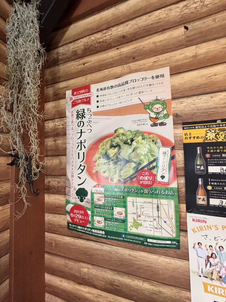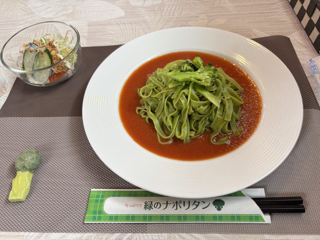 這裡最讓人驚喜的莫過於它的 花椰菜義大利麵(ブロッコリーパスタ),採用秩父別町當地特產 花椰菜粉與米粉混合製成的平麵生麵條,麵條色澤略帶綠意,口感 Q 彈有勁。