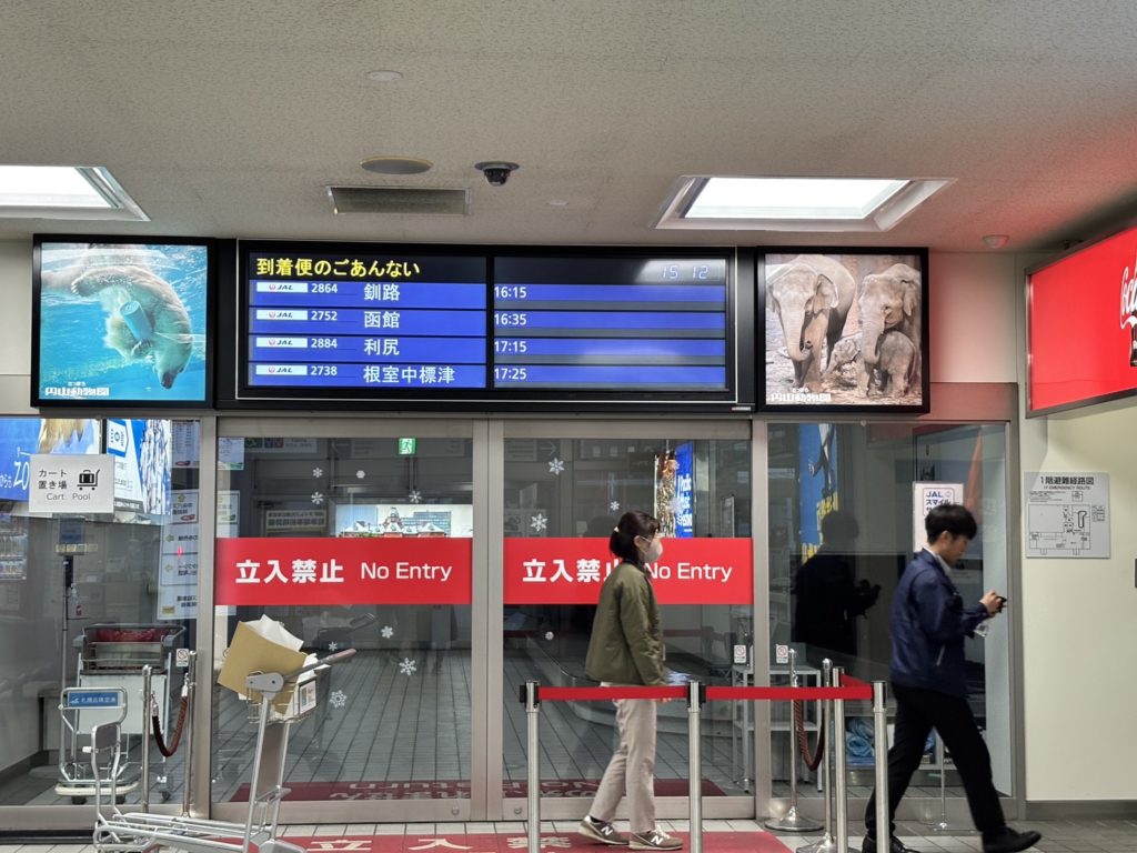 走進大廳,最先看到的是簡潔的航班看板釧路、函館、利尻、根室中標津。